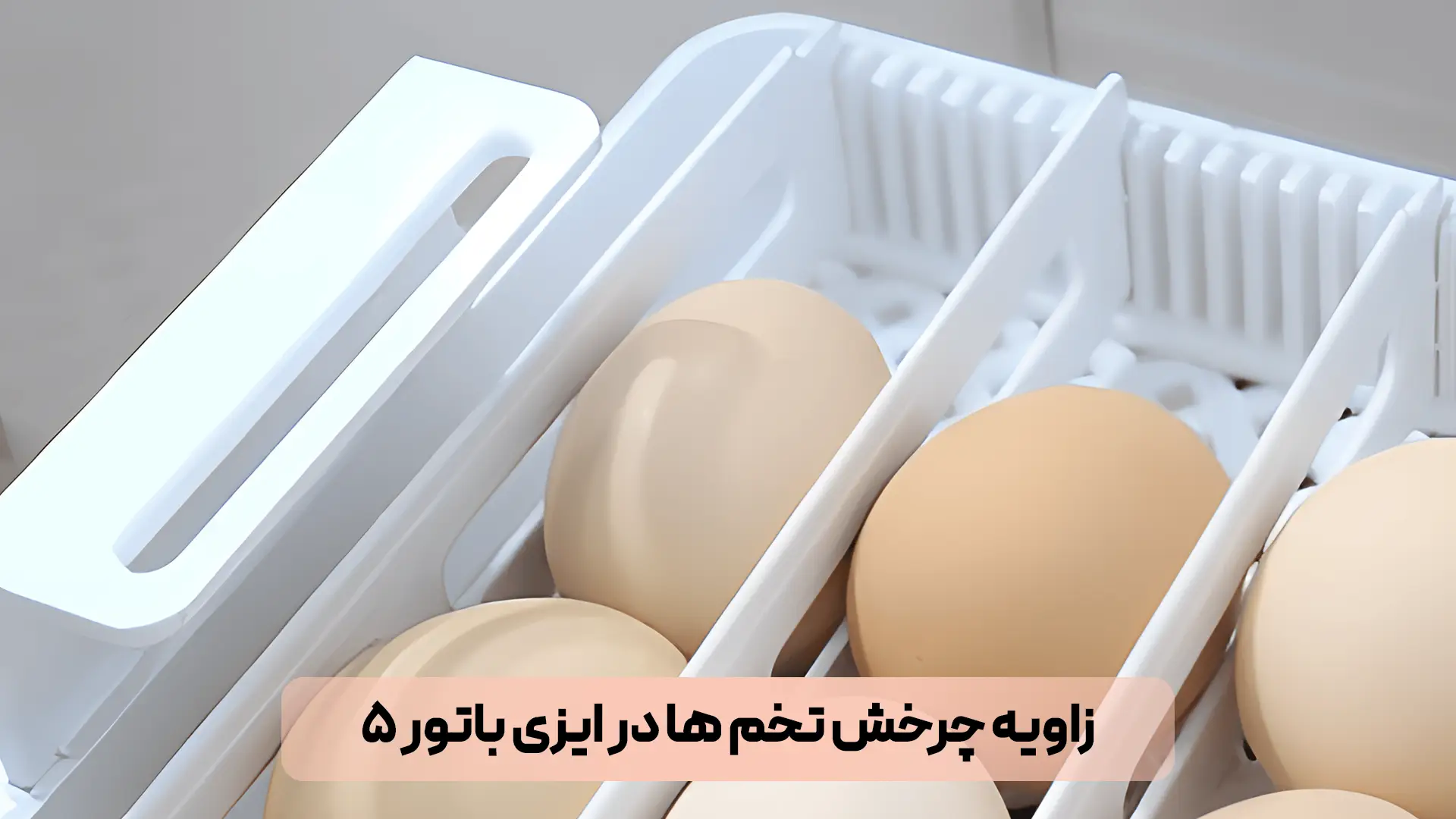 ایزی باتور ۵ از قابلیت چرخش تخم های نطفه دار در زاویه ۳۶۰ درجه برخوردار است. این بدان معناست که تخم های داخل این محصول بصورت کامل چرخانده میشوند. چرخش ۳۶۰ درجه تخم های نطفه دار دقیقاً همانند عملکرد مرغ مادر بوده و پرنده ماده نیز در هنگام جوجه کشی طبیعی تخم ها را با زاویه ۳۶۰ درجه به چرخش در می آورد. خوب است بدانید که این زاویه چرخش تنها در ماشین های جوجه کشی گران قیمت خارجی وجود داشته و انجام آن سبب بالا رفتن درصد هَچ جوجه کشی میگردد.